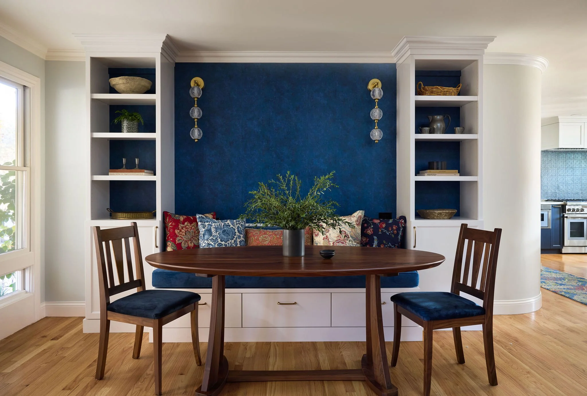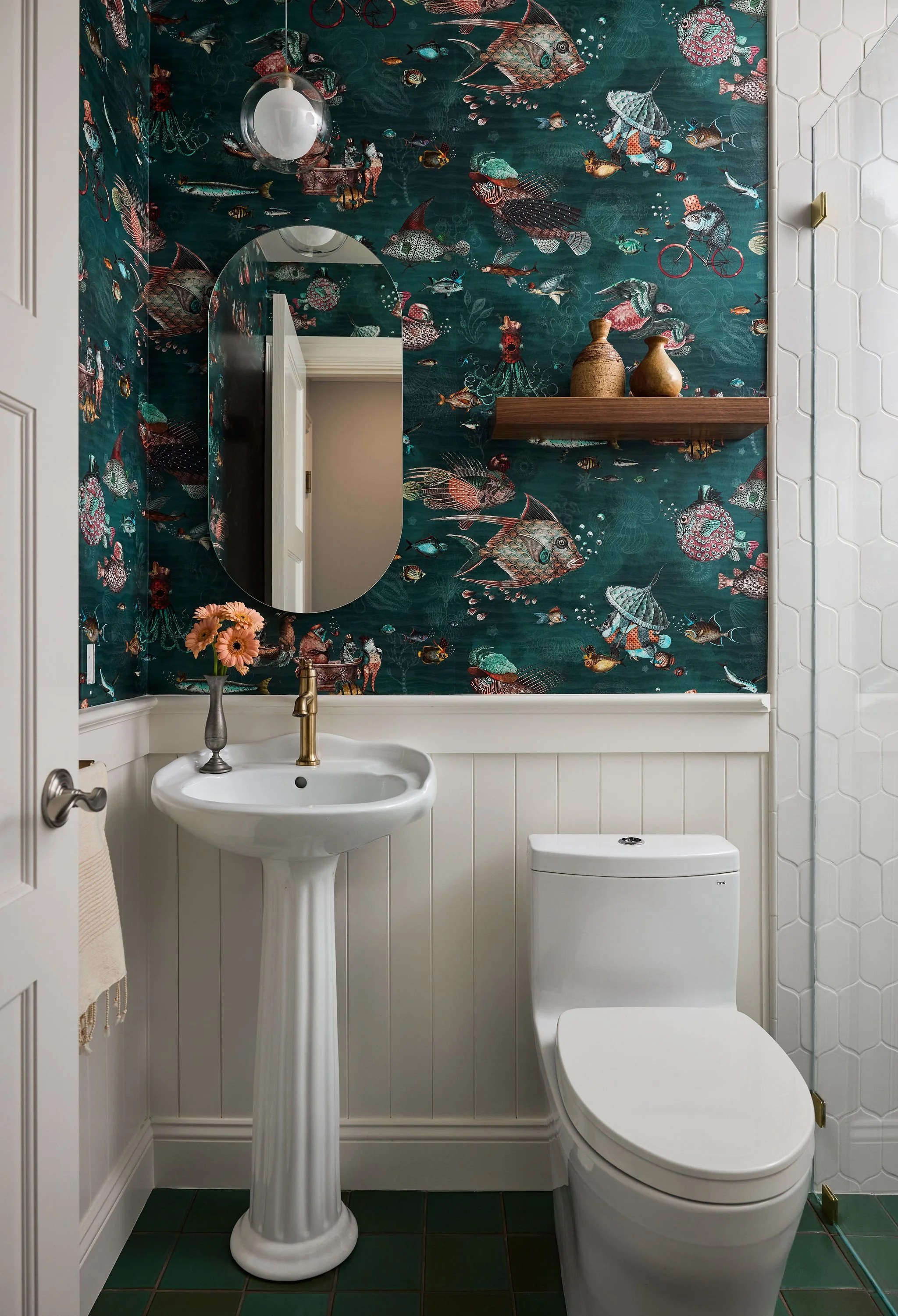 This thoughtfully curated residence blends coastal charm with playful sophistication, where every room tells a story. From imaginative wallpapers and sculptural lighting to rich textures and bold tilework, the home celebrates creativity and comfort in equal measure. A seamless fusion of elegance and eccentricity, it invites both wonder and ease at every turn.