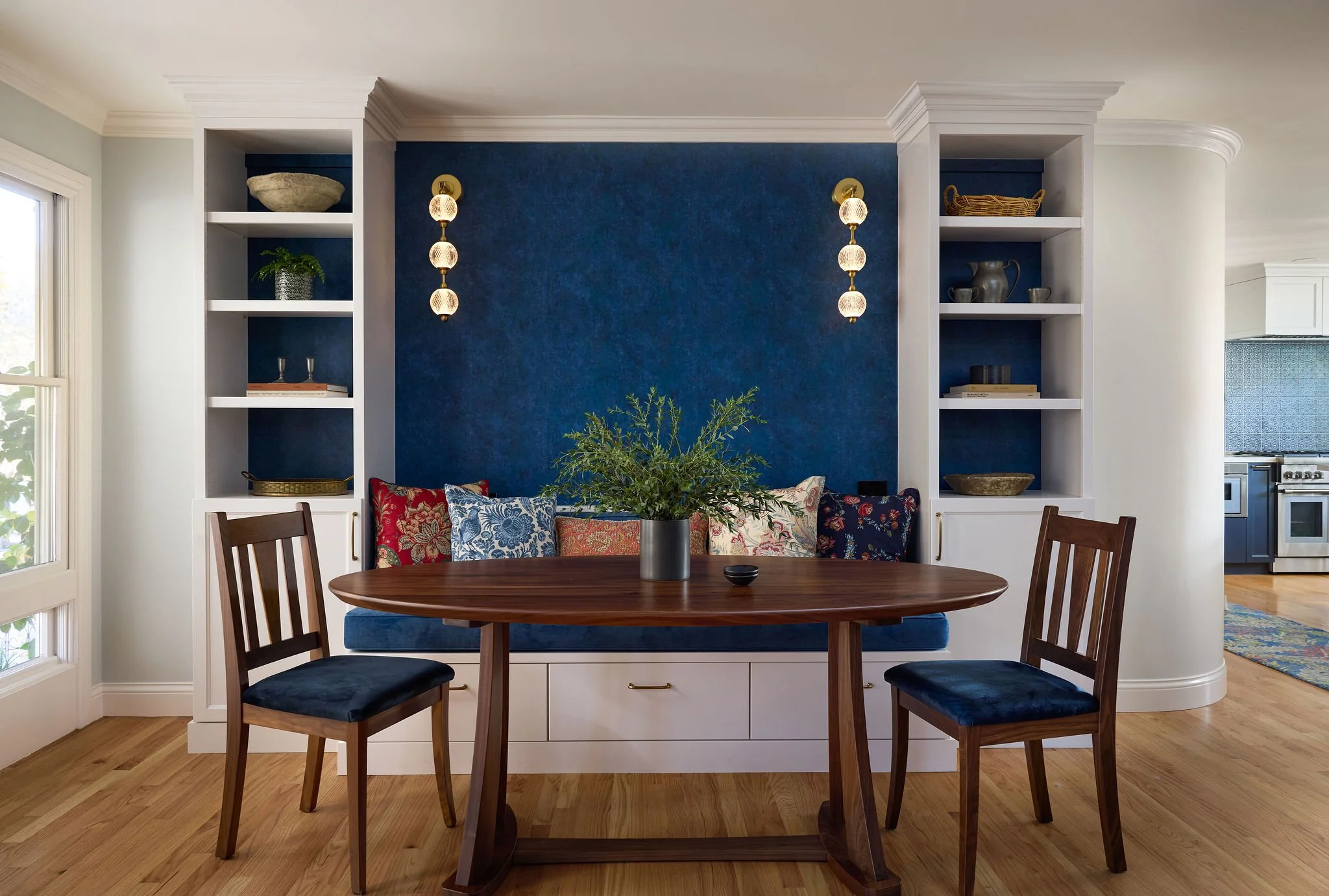 This thoughtfully curated residence blends coastal charm with playful sophistication, where every room tells a story. From imaginative wallpapers and sculptural lighting to rich textures and bold tilework, the home celebrates creativity and comfort in equal measure. A seamless fusion of elegance and eccentricity, it invites both wonder and ease at every turn.